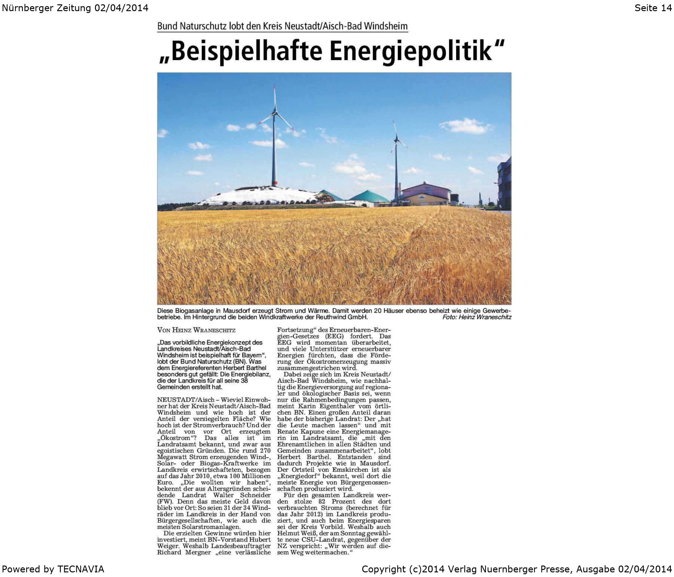 unserer Region. Wind, Biomasse und Sonne liefern die Energie die wir auch in