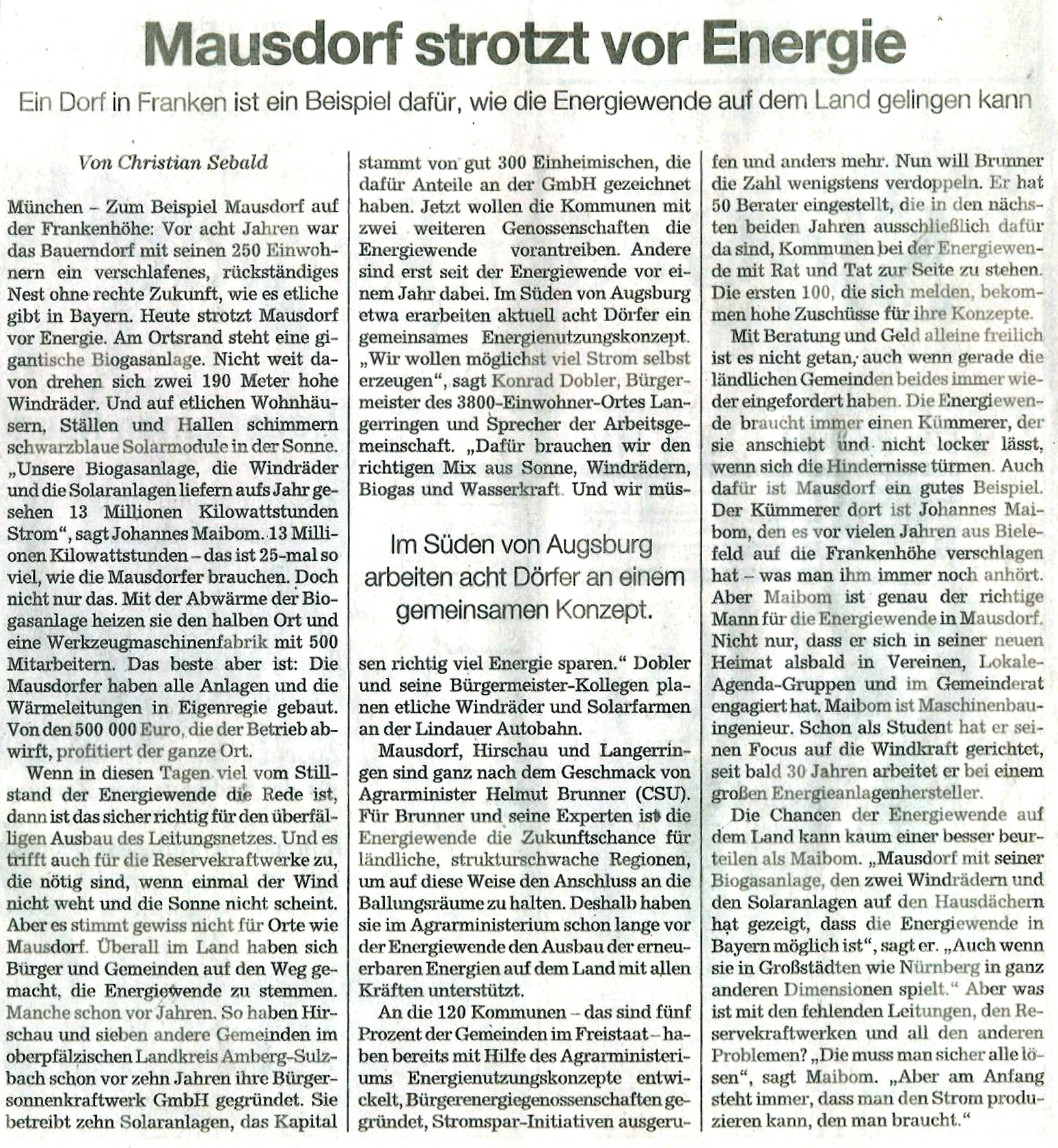 damit möchten wir zum Ausdruck bringen, dass die Energiewende möglich ist, wenn man die Chancen nutzt. Die Mausdorfer haben gezeigt, wie