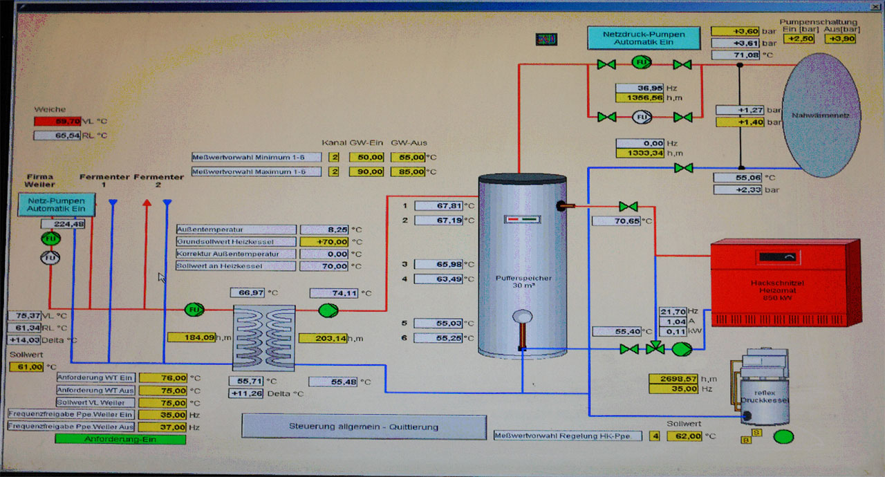 Oberstes Ziel war es, die Prozesswärme der Biogasanlage soweit möglich dem Wärmenetz zur Verfügung zu stellen.